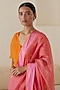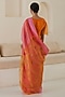 Featuring a rose pink and orange saree in handwoven organza mulberry silk base with jamdani floral motifs. Accentuate it with a blouse, polki jewellery and block heels for a wedding or engagement ceremony.