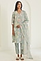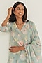 Featuring a sage green kurta in handwoven khadi base with hand-drawn floral print. It is paired with straight pants. Accentuate it with statement jewellery and block heels for a festive or pre-wedding ceremony.