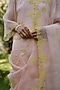 Salmon Pink & Lime Handwoven Organza Silk Hand Embroidered Saree