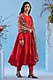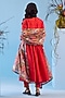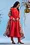 Featuring a scarlet red kurta in handwoven mulberry silk base with organza silk embroidered detailing. It is paired with pants and a cotton silk slip. Accentuate it with statement jewellery and block heels for a festive or pre-wedding ceremony.