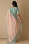 Soft Pink & Coral Blue Organza Mulberry Silk Embroidered Saree