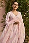 Featuring a soft pink kurta in handwoven mulberry silk base with hand painted floral print. It is paired with hand painted striped pants. Accentuate it with statement jewellery and block heels for a festive or pre-wedding ceremony.
