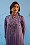 Featuring a violet striped kurta in handwoven mulberry silk satin base with side pockets. It is paired with pants. Accentuate it with statement jewellery and block heels for a festive or pre-wedding ceremony.