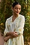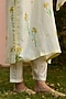 Featuring a yellow kurta in handwoven mulberry silk base with hand painted floral print. It is paired with polka dotted pants. Accentuate it with statement jewellery and block heels for a festive or haldi ceremony.