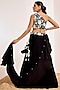 Featuring a black lehenga in georgette base with embroidered belt detailing. it is paired with an embroidered padded one-shoulder blouse and a layered ruffle dupatta. Accentuate with statement jewellery and heels for a wedding or sangeet ceremony.