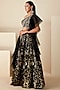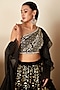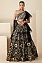 Suruchi Parakh features a mesmerizing Black Lehenga Set that captivates with its elegance. The eye-catching lehenga is crafted in georgette and organza with thread work, including gold foil and drawstring detail. It is paired with a one-shoulder blouse having handwork and a ruffled dupatta. Accessorize the designer lehenga set with statement earrings and heels for pre-weddings or sangeet ceremonies, showcasing style and sophistication.