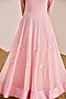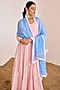 Featuring a blush pink anarkali in georgette and satin base with a round neckline and hand embroidery. It is paired with an organza scalloped dupatta having machine work. Accentuate it with statement earrings and heels for any festive occasion or sangeet ceremony.