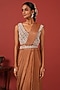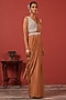 Featuring a brown pre-draped saree in crepe base. It is paired with an embroidered blouse and a belt. Accentuate it with statement earrings and block heels for a festive occasion or wedding ceremony.