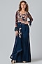 Featuring a dark navy blue padded blouse in crepe and georgette crepe base with hand embroidery. It is paired with a matching fish-cut skirt.