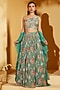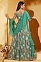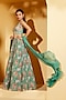 Featuring a green pleated lehenga in georgette crepe base with drawstring detail. It is paired with a one-shoulder crop top having zardosi hand embroidery and an organza ruffled dupatta. Accentuate this designer lehenga set with dangler earrings and block heels for a wedding look.