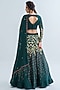 Featuring a green lehenga in georgette crepe base with hand worked floral motifs. It is paired with a matching padded blouse and a scalloped dupatta.