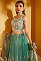 Green Georgette Crepe & Organza Pleated Lehenga Set