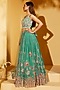 Featuring a green pleated lehenga in georgette crepe and organza base. It is paired with a sleeveless top having mirror work and a net dupatta. Accentuate this designer lehenga set with dangler earrings and block heels for a wedding look.