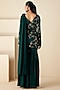 Suruchi Parakh features a mesmerizing Green Sharara Set that captivates with its elegance. The eye-catching overlap kurta is crafted in georgette crepe with a V-neckline. It is paired with sharara pants and a pre-pleated dupatta having tassels. Accessorize the designer sharara set with statement earrings and heels for festive occasions or mehendi ceremonies, showcasing style and sophistication.