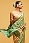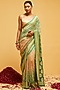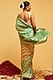 Featuring a green and pink banarasi bandhani saree in georgette base with an attached unstitched blouse fabric. Accentuate this designer saree set with dangler earrings and block heels for a wedding look.