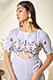 Featuring a light blue cowl padded dress in georgette base with handcrafted threads, pearls, and drapes.