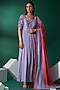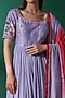 Featuring a lilac padded anarkali in tussar silk and georgette base with a mirror and thread embroidered yoke, including pleated flare work. It is paired with a matching ombre-dyed dupatta having pearl detailing.