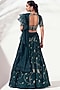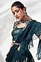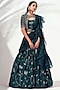 Featuring a midnight green lehenga in georgette crepe and soft organza base with an attached dupatta and hand embroidery. It is paired with a matching padded blouse having an attached belt.