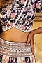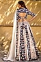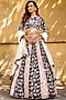 Featuring a navy blue and off-white lehenga in georgette crepe base with an embellished belt. It is paired with a matching hand embroidered blouse and an organza dupatta.