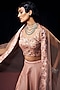 Featuring a pastel pink kalidar lehenga in tissue organza silk and net base with sequins, zari and floral embroidery. It is paired with an embroidered blouse and a cutwork dupatta. Accentuate lehenga set with jewellery, a clutch, and embellished heels for both morning celebrations and evening festivities, this ensemble blends traditional artistry with contemporary elegance.