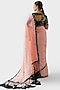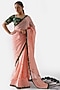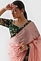 Featuring a peach and bottle green saree in georgette crepe base with tassels and sequins embroidery. It is paired with a padded blouse. Style it with block heels, polki jewellery and a clutch, perfect for weddings or sangeet ceremonies.