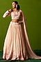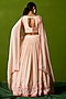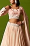 Featuring a peach lehenga in georgette base with thread embroidery. It is paired with a cutwork blouse and a dupatta. Perfect for a wedding or engagement ceremony.