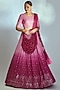 Featuring a pink shaded lehenga in georgette base with an attached dupatta. It is paired with a matching embroidered blouse.