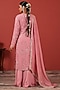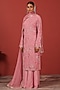 Featuring a pink kurta in georgette base with threadwork, beads and sequins embroidery. It is paired with sharara pants and a georgette dupatta. Accentuate it with statement earrings and heels for festive occasion, pooja or sangeet ceremonies.