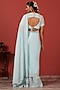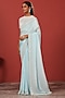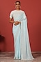 Featuring a powder blue saree in crepe base with embroidery. It is paired with an embroidered blouse. Accentuate it with dangler earrings and heels for a festive occasions, sangeet or wedding ceremonies.