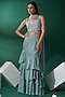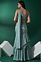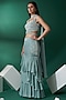 Featuring a sea green fish cut lehenga in satin silk and georgette crepe base with layered flares. It is paired with a matching hand-embroidered blouse and a pre-pleated choker dupatta.