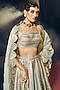 Featuring a sea green lehenga in tissue organza silk and organza base, adorned with mirror, zari, and cutwork. It is paired with an embroidered blouse and a dupatta. Accentuate lehenga set with jewellery, a coordinated clutch and classic embellished heels for sangeet, wedding ceremony or festive occasions. This ensemble reflects a harmonious balance of heritage and modernity, making it a timeless choice for
