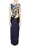 Featuring half and half blue georgette sari with pitta work on black pallu.