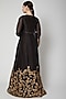Featuring a black lehenga in raw silk and organza base with print. It is paired with a matching blouse and a net dupatta having scallop border.