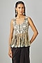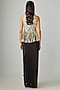 Featuring a black draped skirt in crepe base. It is paired with a top having geometric embroidery and fringe details. Accentuate it with statement jewellery and heels for festive occasions or wedding ceremony.