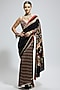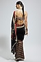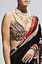 Featuring a blue and black saree in crepe base with mask print. It is paired with a textured bustier. Accentuate it with statement jewellery and heels for a casual yet stylish look.