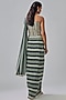 Blue Crepe Chevron Printed Draped Saree Set
