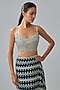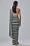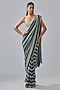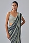 Featuring a blue saree in crepe base with geometric print. It is paired with an embellished bustier. Accentuate it with jewellery and heels for wedding ceremonies.