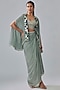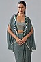 Featuring a blue cape in crepe base with embellishment and print. It is paired with a metallic embellished bustier and a printed draped skirt. Accentuate it with minimal jewellery and heels for a festive occasions or wedding ceremony.