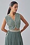 Featuring a blue crop top in crepe base with embroidery. It is paired with a printed pleated skirt. Accentuate it with statement jewellery and heels for festive occasions or wedding ceremony.