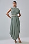 Featuring a blue cowl dress in crepe base with print. It is paired with a belt. Accentuate it with minimal jewellery and heels for a complete look.