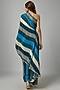 Blue Crepe Striped One-Shoulder Pant Saree Set