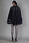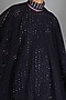 Featuring a cobalt blue cape top in denim base. It is paired with a matching turtle neck printed top and printed net stockings.