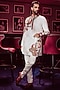 Featuring an ivory kurta in silk base with sequins work and embroidery. It is paired with straight pants. Style it with mojaris for a festive occasion, cultural event, sangeet or engagement ceremony.