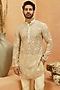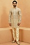 Featuring an ivory sheer kurta in organza base with thread tonal embroidery. It is paired with trousers. Perfect for festive celebrations and intimate gatherings, this ensemble is a timeless blend of tradition and modern refinement.
