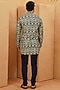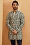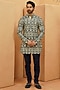 Featuring an ivory kurta in silk base with geometric embellishments in earthy tones. It is paired with trousers. This ensemble strikes the perfect balance between sophistication and effortless style, making it an ideal choice for festive gatherings or evening celebrations.