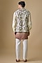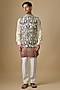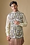 Featuring a multi-colored bundi jacket in silk base. Style it with kurta, pants and kolhapuri sandals for a festive occasion, an intimate pooja, wedding or engagement ceremony.