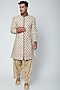 Featuring a nude kurta in chanderi silk base with gold buttis and thread embellishment. It is paired with matching bottoms.