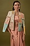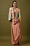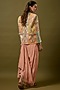 Featuring a pink cape jacket in silk base with embroidery. It is paired with a bustier and a draped skirt. Ideal for festive parties where modern glamour takes the spotlight.