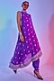 Featuring a purple draped tunic in silk base with embellishments. It is paired with matching dhoti pants.