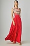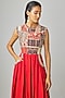 Featuring a red jumpsuit in crepe base with terracotta patchwork and cutout back. Accentuate it with statement jewellery and heels for festive occasions or wedding ceremony.